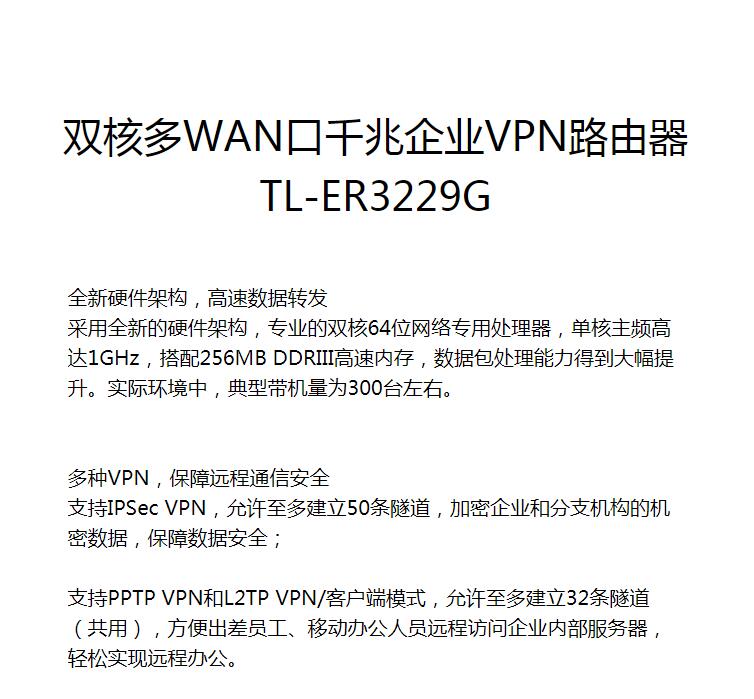 路由器普聯(lián)/TP-LINK雙核多WAN口千兆企業(yè)VPN路由器TL-ER3229G/臺