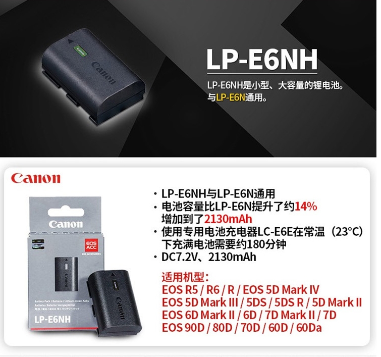 佳能/CANON E6NH 相機電池/充電器 配件電池 適用于佳能 5DIV 機型